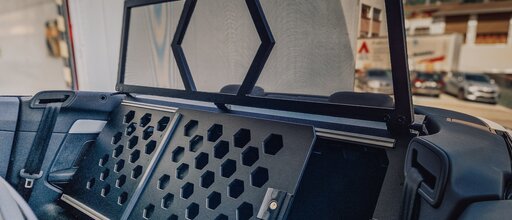 Auf Wunsch konstruieren wir Ihnen einen neuen Windschott, falls der vorhandene wegen der Hundebox nicht mehr passt.