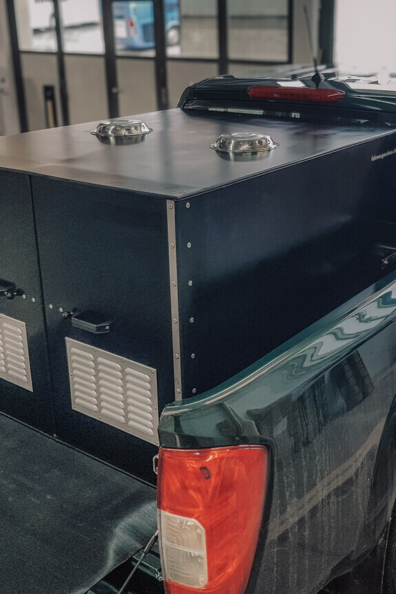 Für alle, die sich auch abseits befestigter Strassen zu Hause fühlen, ist die Pickup-Box von Swiss Blackhound die perfekte Lösung. Jede Box wird wasserdicht verschweisst und passgenau an das jeweilige Fahrzeug angepasst – ideal für anspruchsvolle Einsätze auf unebenem Terrain.